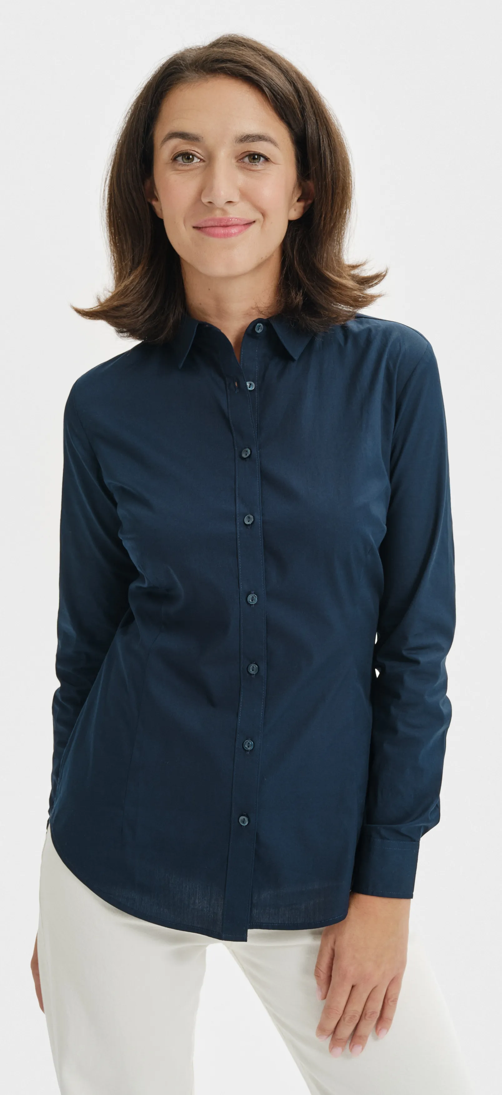 Damska bawełniana koszula zwężana z długim rękawem.