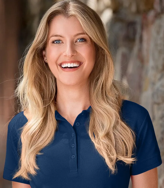 Elegancka damska koszulka polo wykonana jest w 65% z bawełny i w 35% z poliestru, co zapewnia maksymalny komfort przez cały dzień.