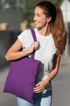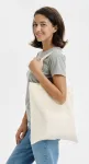 Praktyczna i składana bawełniana torba na zakupy z możliwością noszenia w ręku i na ramieniu.