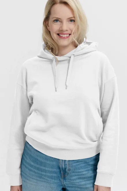 Miękki, ciepły materiał zapewnia komfort przez cały dzień, natomiast kaptur dodaje bluzie praktyczności i stylu. Biały odcień działa świeżo, elegancko i ponadczasowo, dzięki czemu łatwo łączy się z dowolnym kolorem czy dodatkiem.